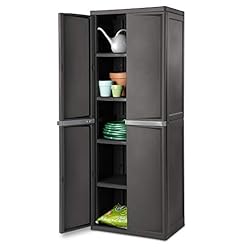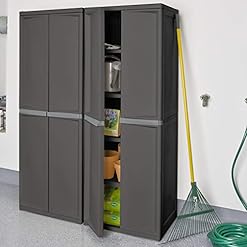 This STERILITE Heavy-Duty 4-Shelf Storage Cabinet is perfect for storing a variety of supplies and light equipment. It has doors that can be secured with a padlock, and the shelves are adjustable. It’s a sturdy cabinet you can assemble quickly and without any tools. Size is 69.38in. x 25.63in. x 18.88in. Plus it’s made in America for quality you can trust. Available in flat gray color.